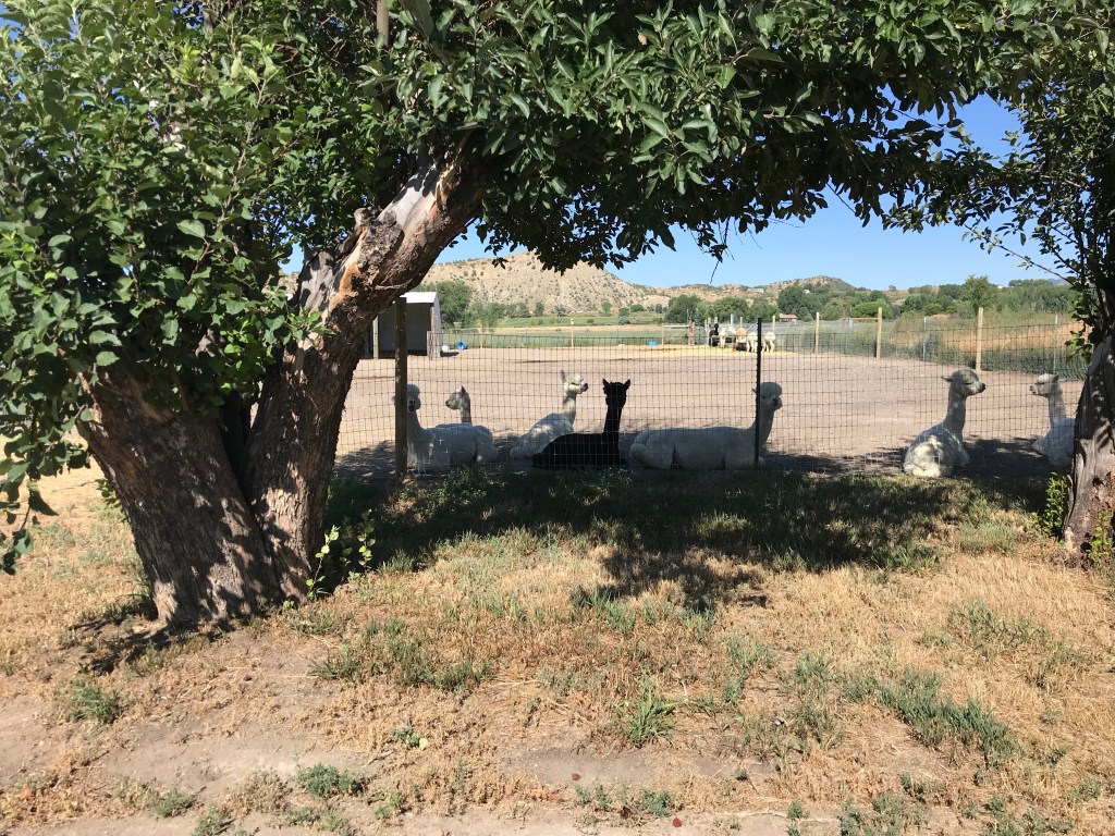 On our way back we stopped at a Harvest Host Sopris Alpaca Farm and boutique . What a gem! It is of Hwy 70 in Silt, Colorado. Yes it was hot and lots of seasonal bugs. The big present was the view and the cute alpacas. The hosts were so friendly and the boutique was so cute. We plan on staying there on our way back to the ranch.